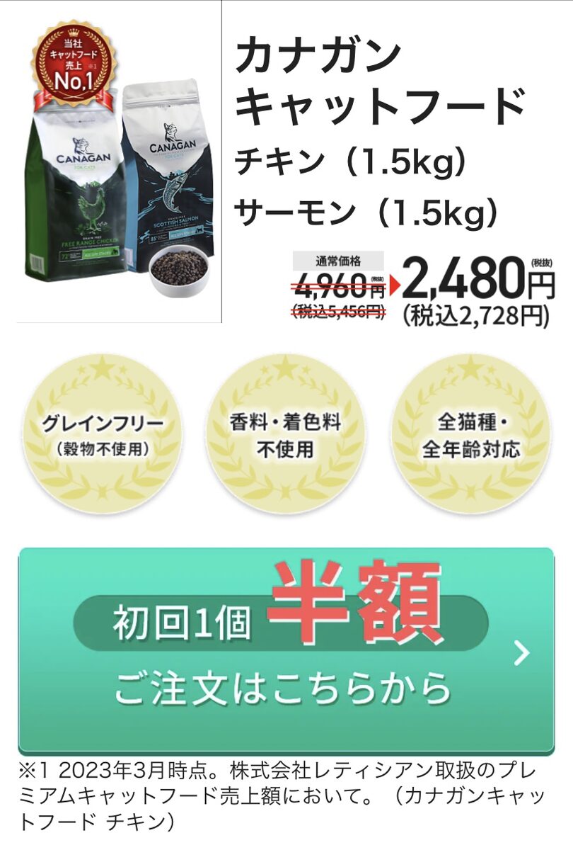 半額で購入するには当サイトからカナガン公式サイトへ飛ぶ必要があります。