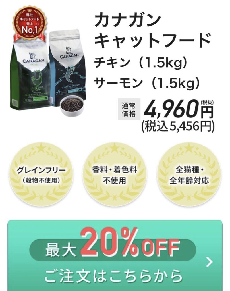 | カナガン公式 通常価格 | 5,456円 | 880円 |