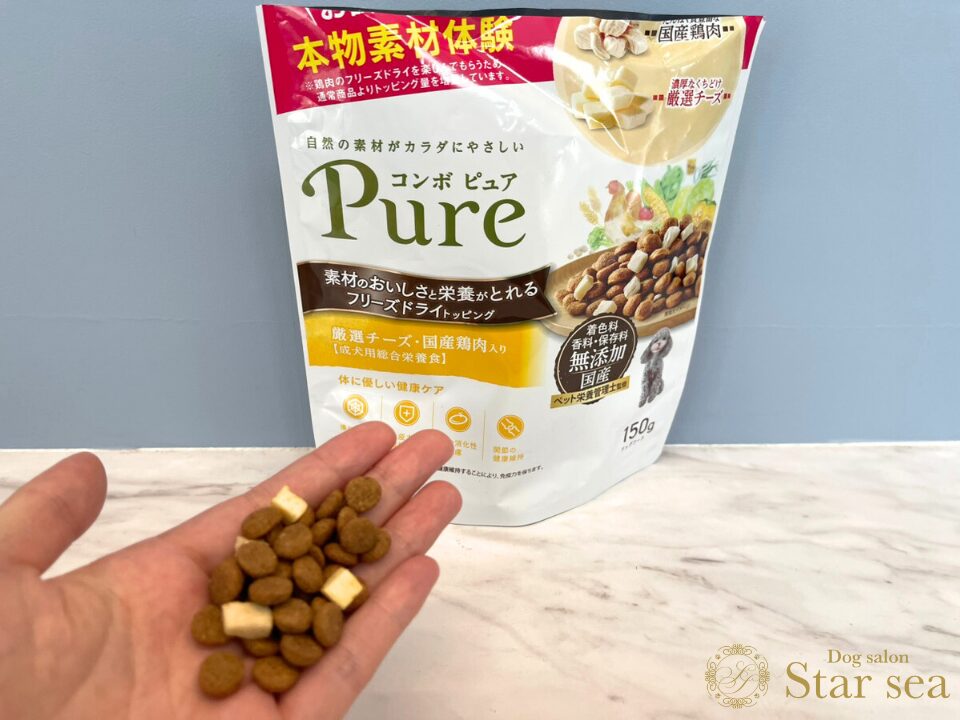 「コンボ ピュア ドッグ 超小粒」よりも粒が大きいです。
