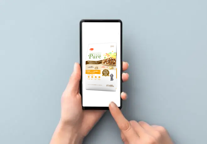 パッケージは白を基調とし、ドッグフードの写真が大きく印刷されています。