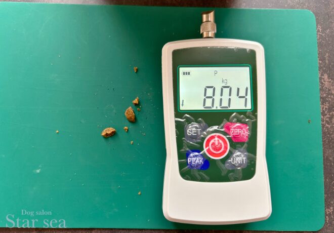 粒の硬さを専門の機械で測定すると、一般的なドッグフードよりもやや硬めであることがわかりました。