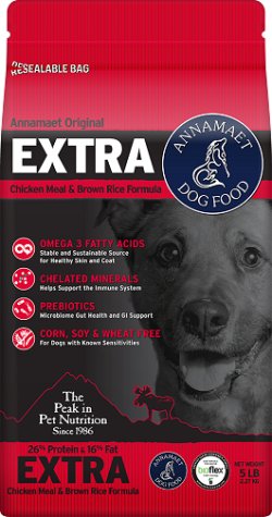 We researched the dog food market and Annamaet Original Adult Formula Dry Dog Food came up in the top 3. Our vet had recommended that we rotate foods after each bag. It turns out that our dog developed a rash on his belly every time we fed him Annamaet Original Adult Formula Dry Dog Food. At first we thought the source was environmental. But after the third outbreak in 5 months and literally thousands of dollars at the vet we figured out it was Annamaet Original Adult Formula Dry Dog Food.