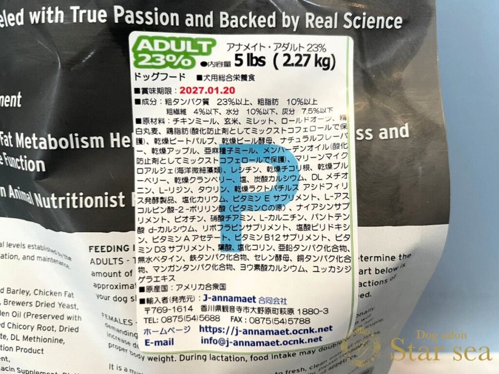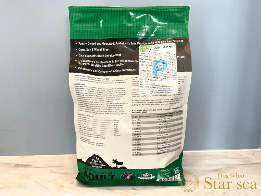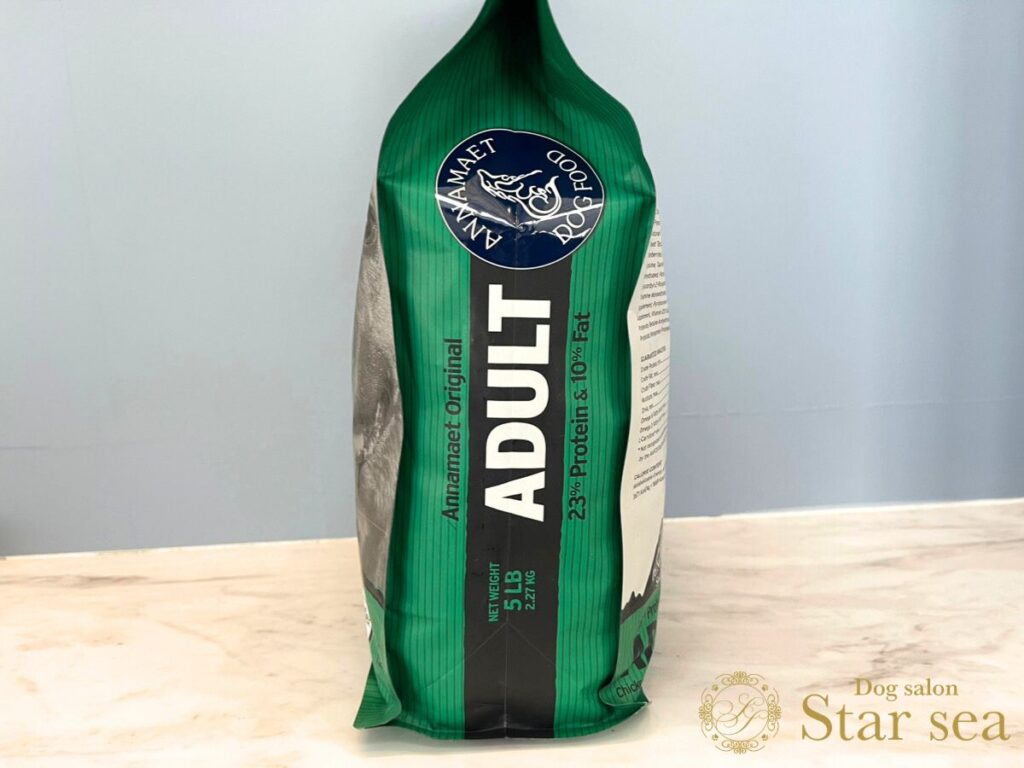 「アナメイト アダルト23%」であれば、日本の室内で暮らすワンちゃんには合っている栄養かなと思います。