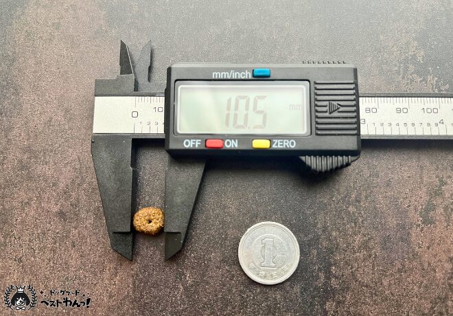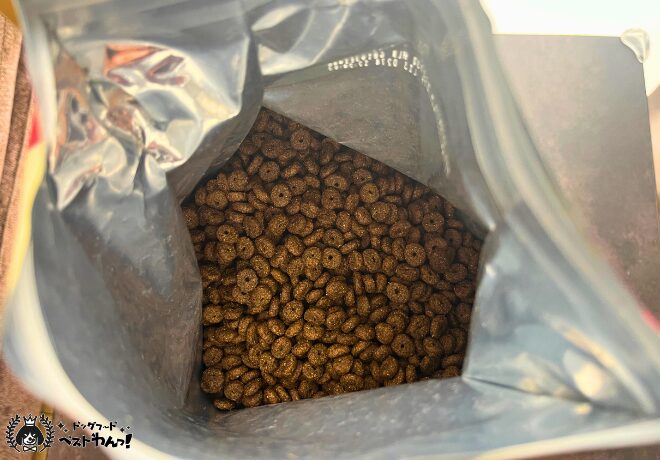 粒の大きさは約1センチほどで、子犬や歯の弱いシニア犬でも食べられるサイズ感です。
