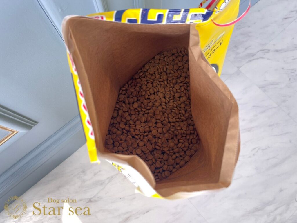 粒は小さくなく厚みもあるので小型犬や子犬、シニアには大きいと感じるかもしれません。