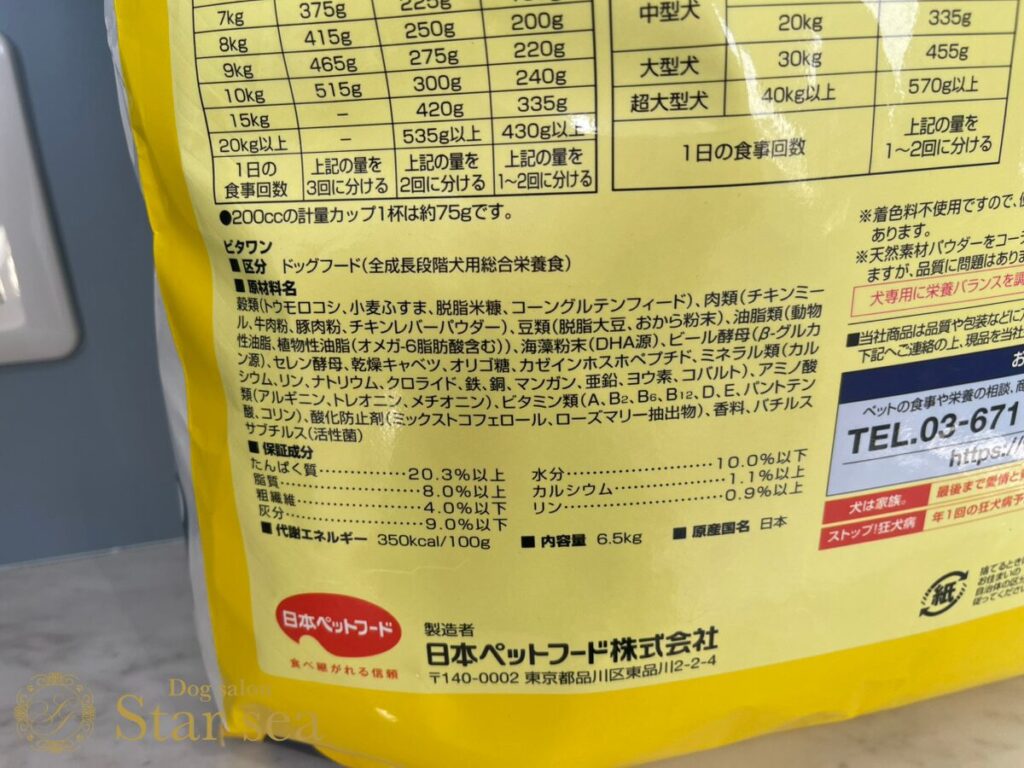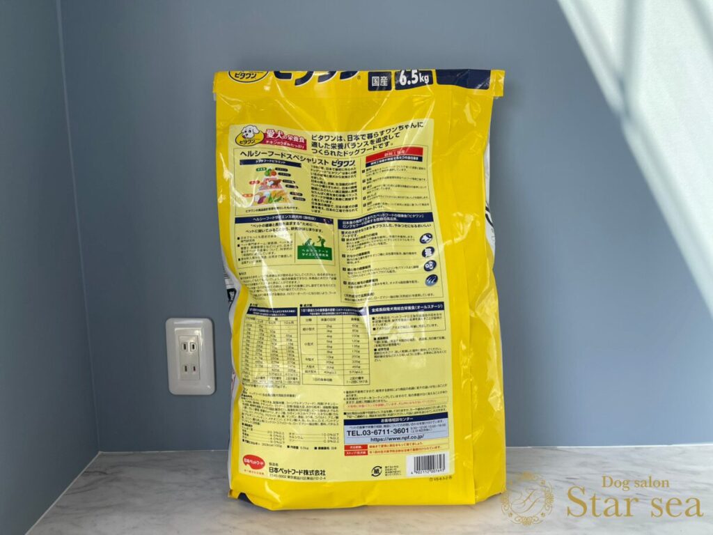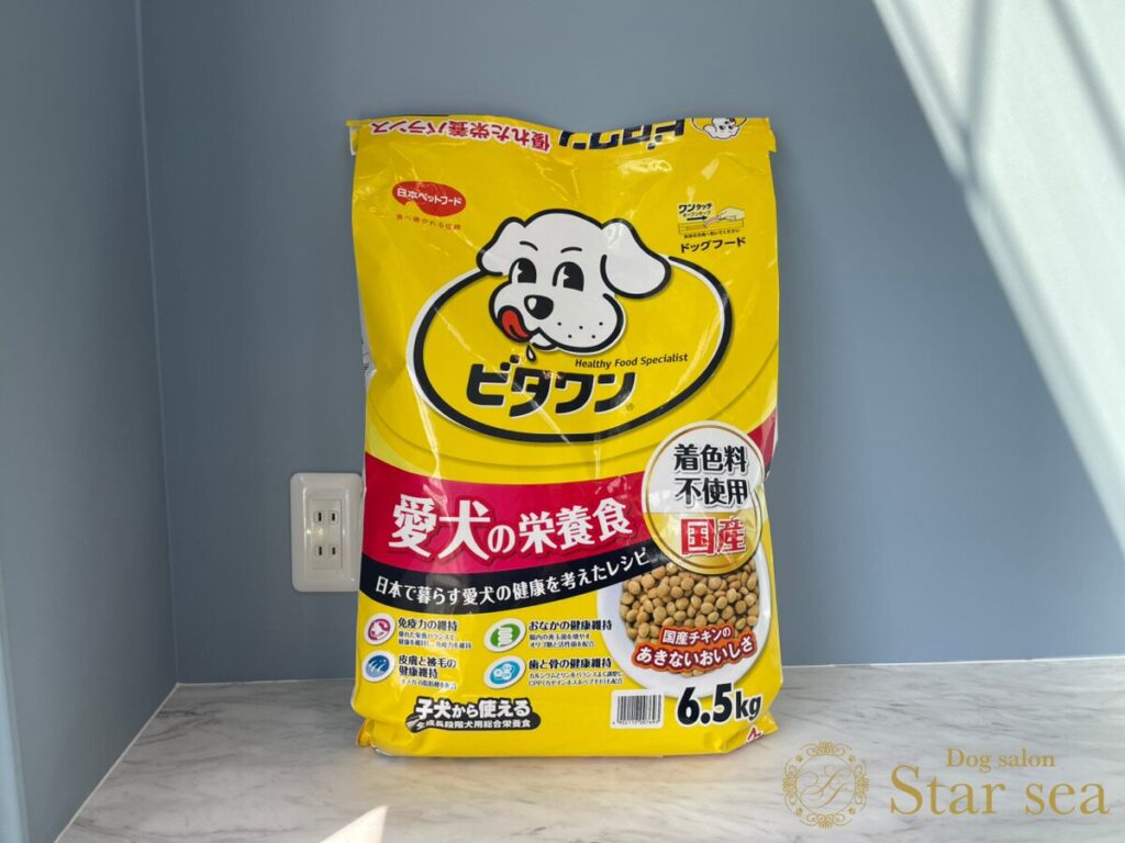 大きな犬のイラスト「ビタワンくん」が書かれた黄色いパッケージが目を引きます。
