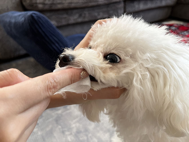 山本星海私の経営しているトリミングサロンの歯磨きにも使用しているのがジョンポールペットの歯磨きウェットシートです。歯磨き初心者の方は、犬が嫌がりにくいウェットシートを使った歯磨きをおすすめしています。