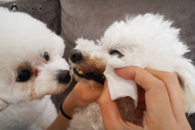 その中でも歯ブラシや歯磨きシートで磨いてあげることがおすすめです。人間同様効率よく歯垢を取り除くことができます。