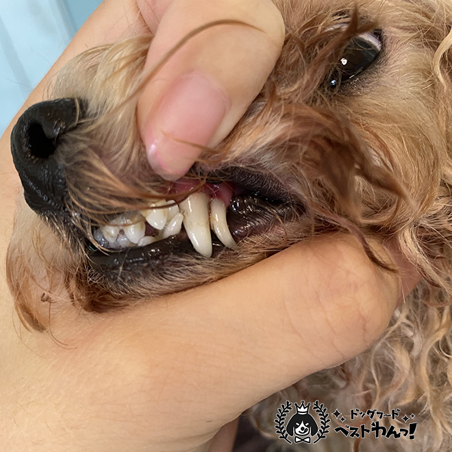 生後3か月で我が家にきてから、ほぼ毎日歯磨きをしている。歯磨きロープをかじるのも好き。まだ歯石も付いていないが、歯の根元や奥歯に汚れが付きやすい。