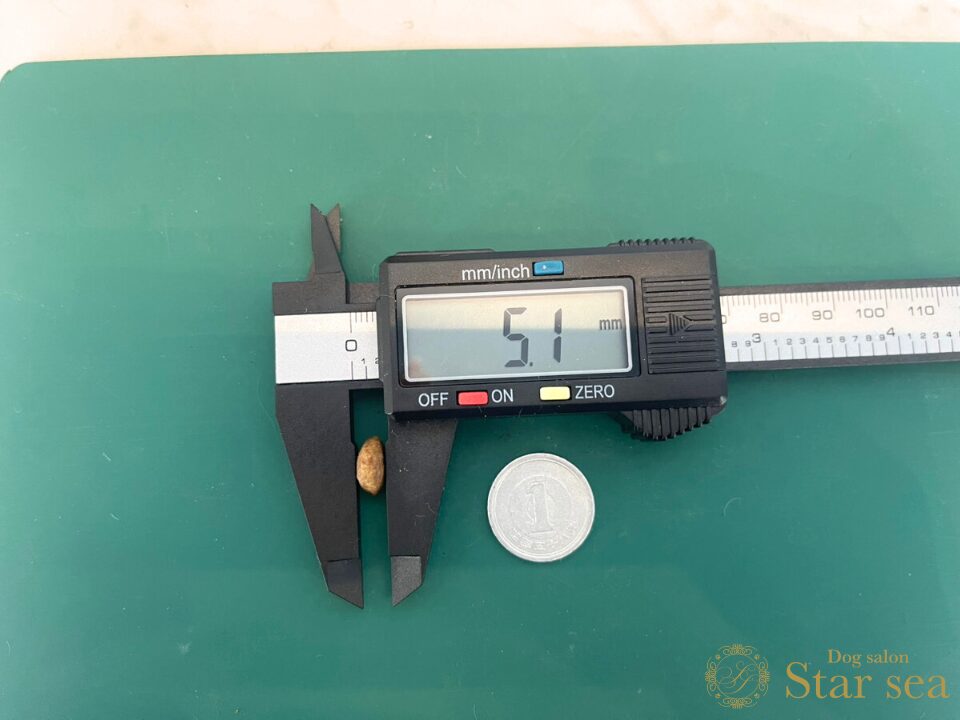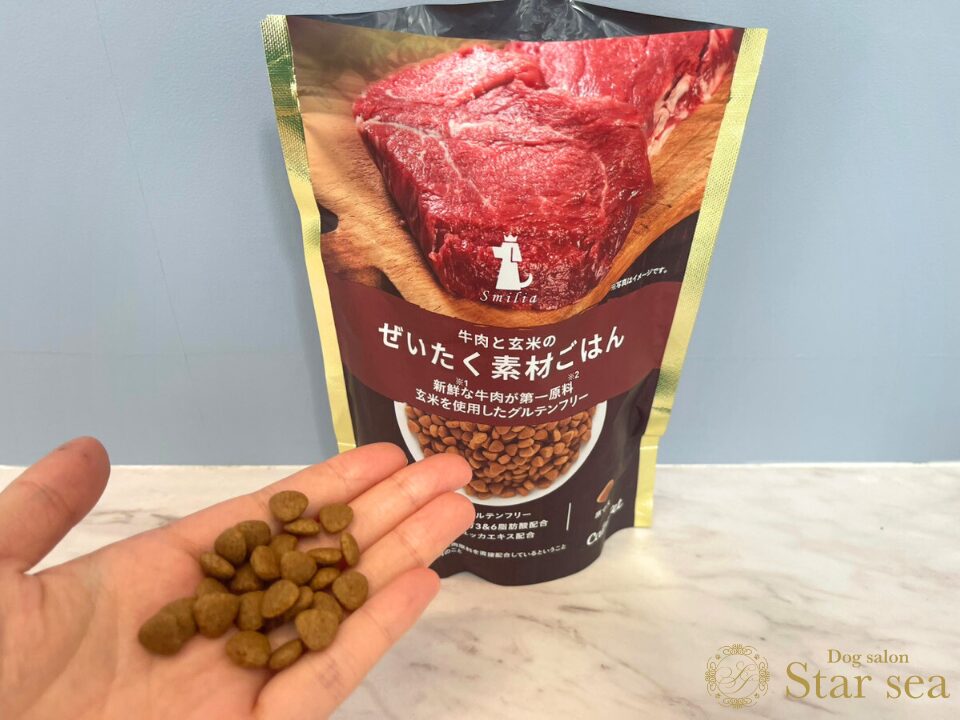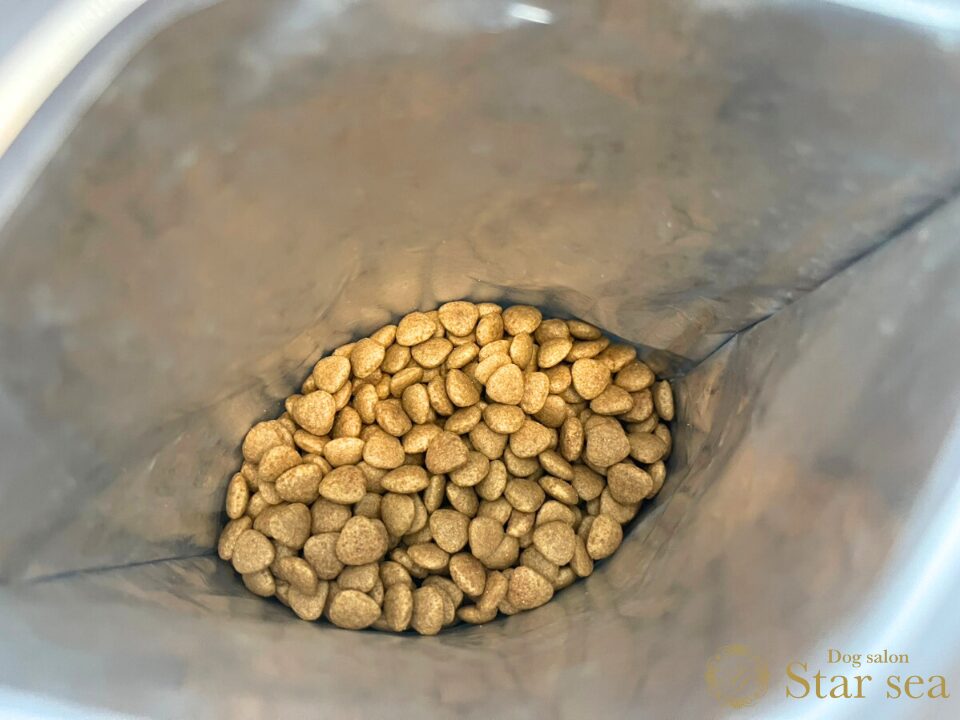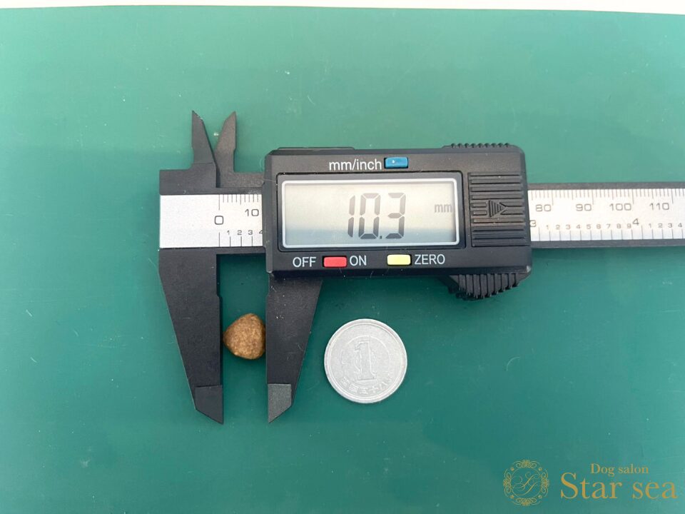 やや大きめの小粒といったところですが、成犬用なので特に問題なく食べられるでしょう。