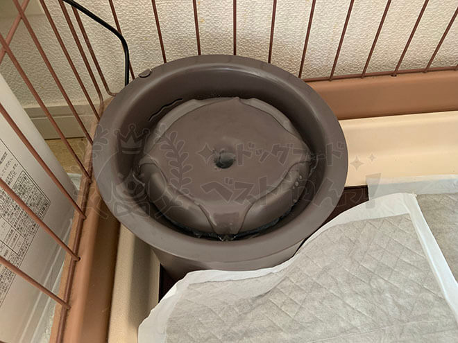 今まで上にあるピンクのペットボトルに入れるタイプの水飲みを使っていましたが、目に当たる可能性があるのですぐ撤去しました。