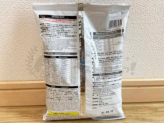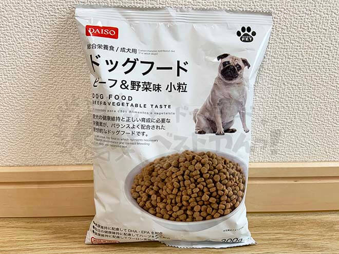 小型犬向きのドッグフードなので大容量ではありませんが、「DAISOドッグフード」ほど頻繁に購入する必要はないといえます。
