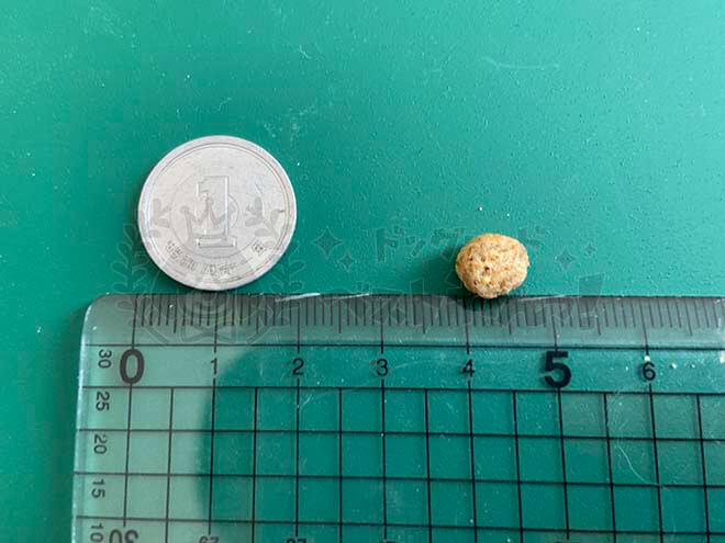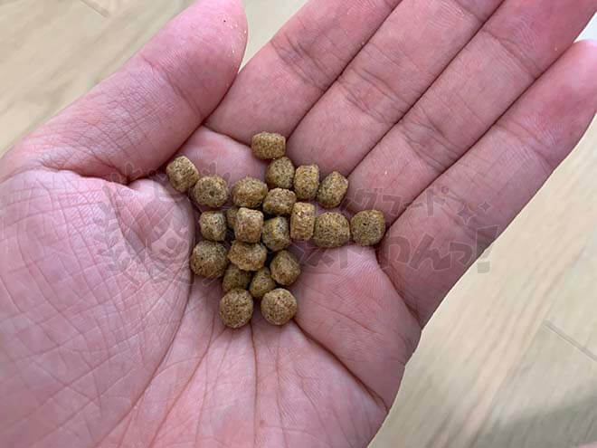 大きさはこのような感じです。1センチ以下で小型犬でも問題なく食べられるサイズでしょう。