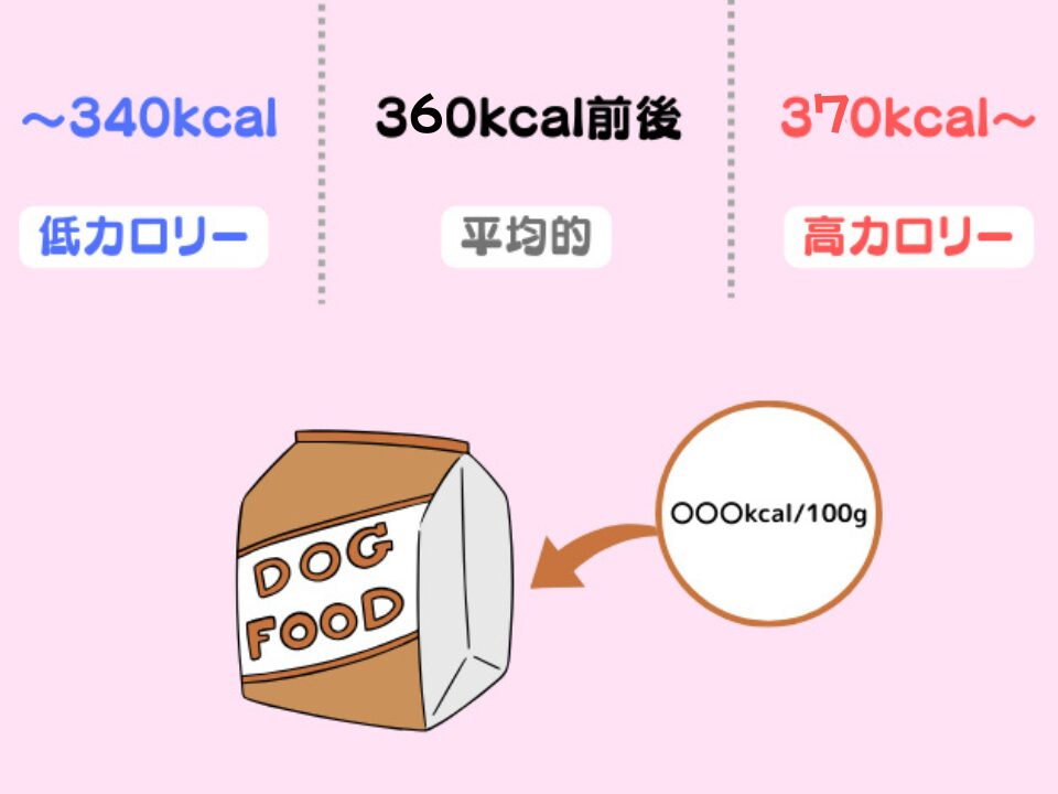 ドッグフードのカロリーは360kcal前後が平均的です。
