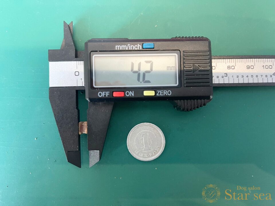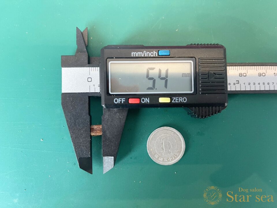 ドッグヴォイスの粒を測定してみると、直径が5.4㎜、幅が4.2㎜でした。一般的なフードと比べるとかなり小さいです。