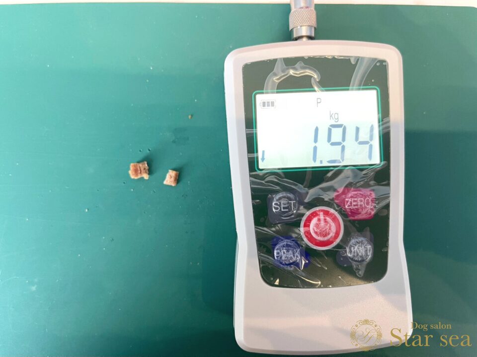 硬度測定器で粒の硬さを測定してみたところ、1.94㎏とかなり柔らかいことがわかりました。