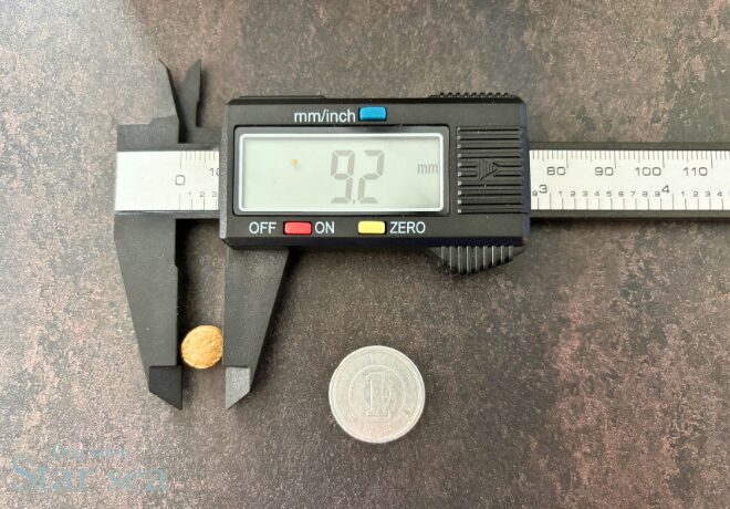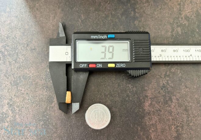 粒の大きさを測定したところ約1cm、厚みは約4mmと小粒で、小型犬でも口に運びやすい大きさでした。