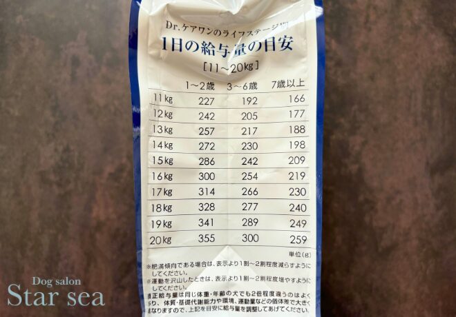 Dr.ケアワンドッグフードの1日あたりの給餌量の目安は?