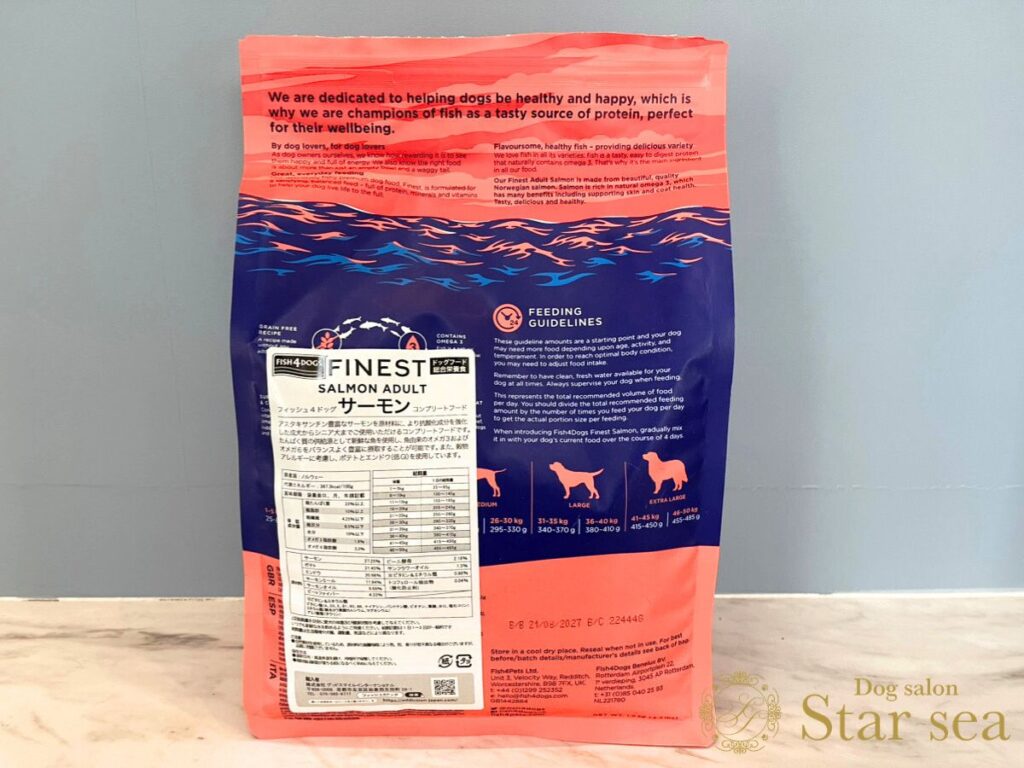 ※今回は「フィッシュ4ドッグ サーモン小粒」の表記です。