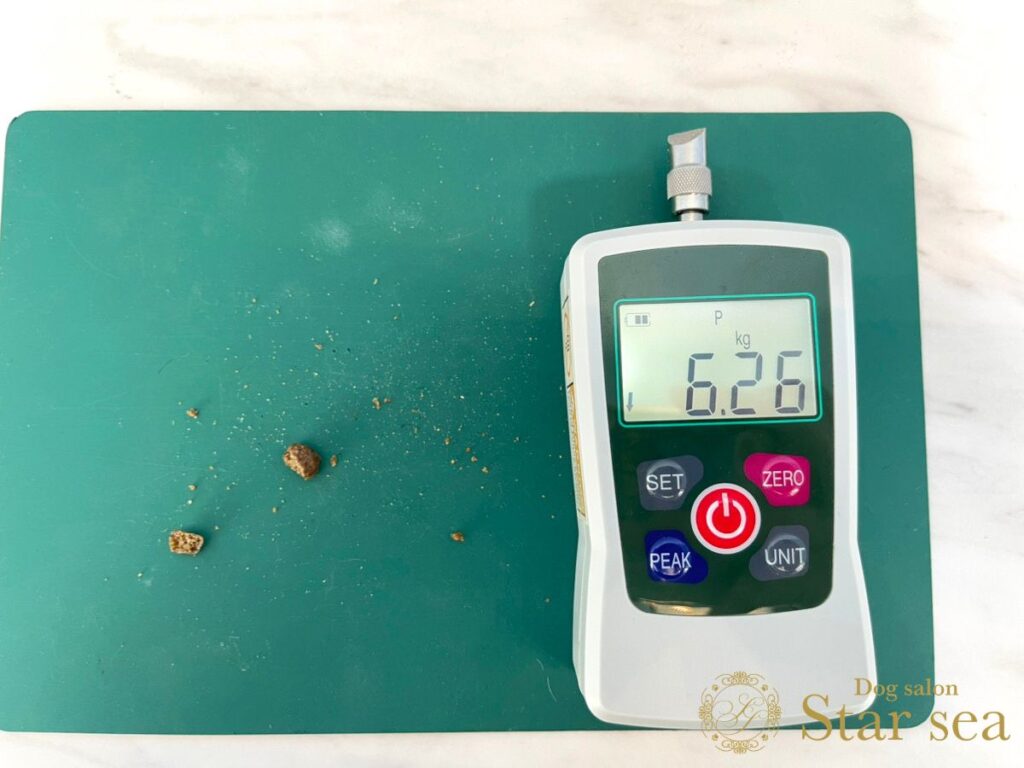 粒の硬さを硬度測定器で計測したところ、6.26㎏でした。