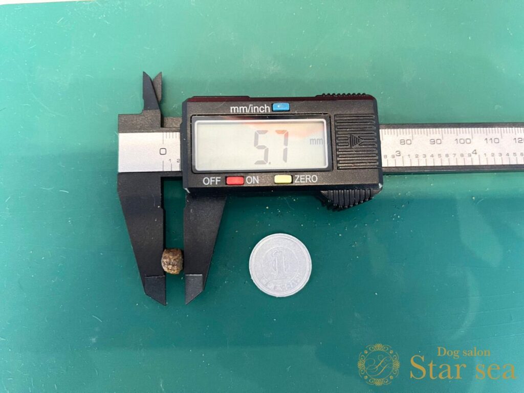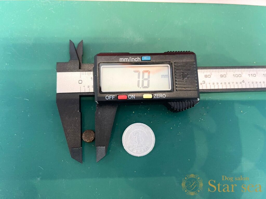 粒の大きさを計測したところ、大きさは7.8㎜、幅は5.7㎜でした。