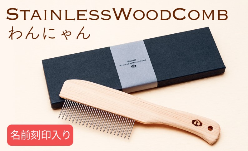 富山県氷見市: ペットコーム「StainlessWoodComb」名前刻印入り