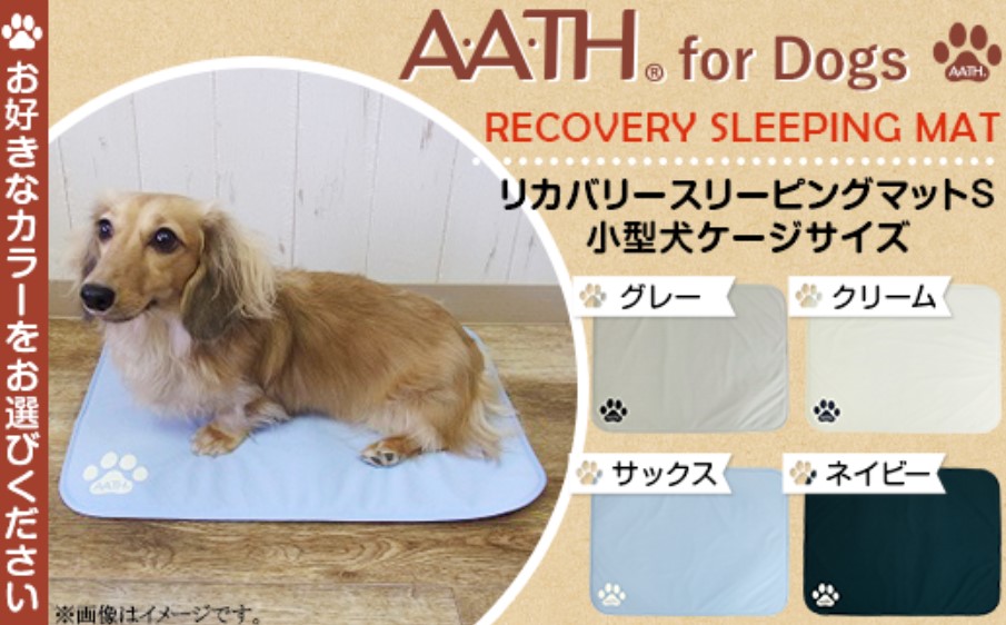 犬の健康維持・疲労回復をサポートする特殊繊維素材「A.A.TH」を用いたマットで、「疲れたワンちゃんの味方!」と紹介されており、愛犬のベッドやケージに敷くだけで簡単に使え、ペットの体に負担をかけず休息を促すことができます​よ。