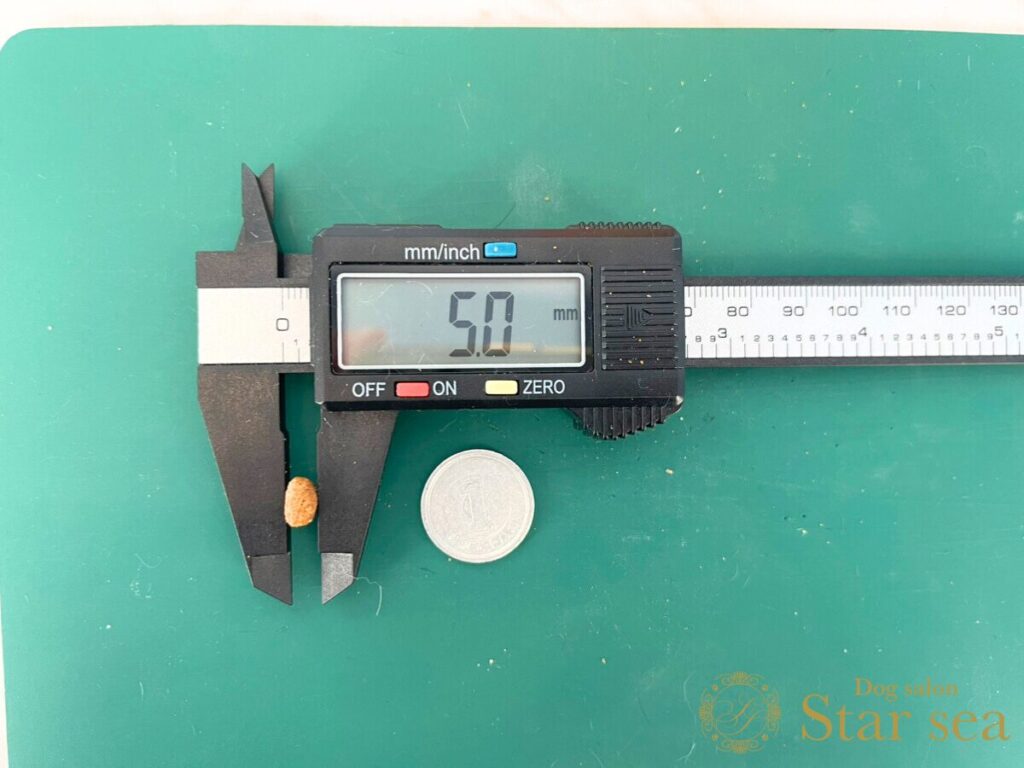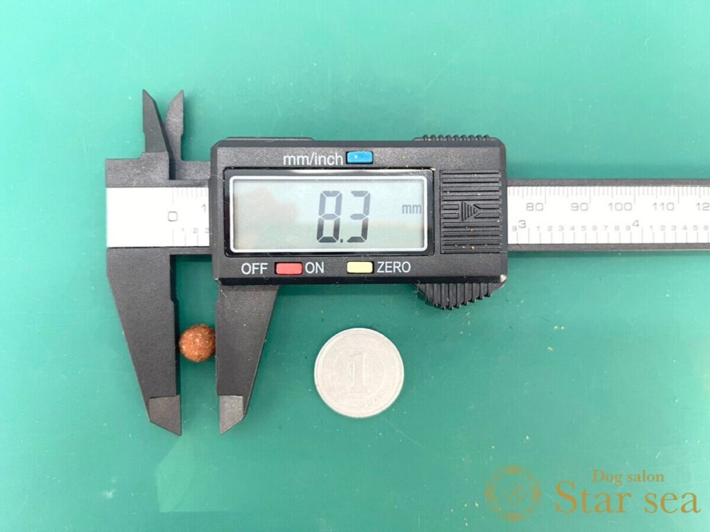 粒を測定すると、大きさは8.3㎜、厚さは5.0㎜でした。