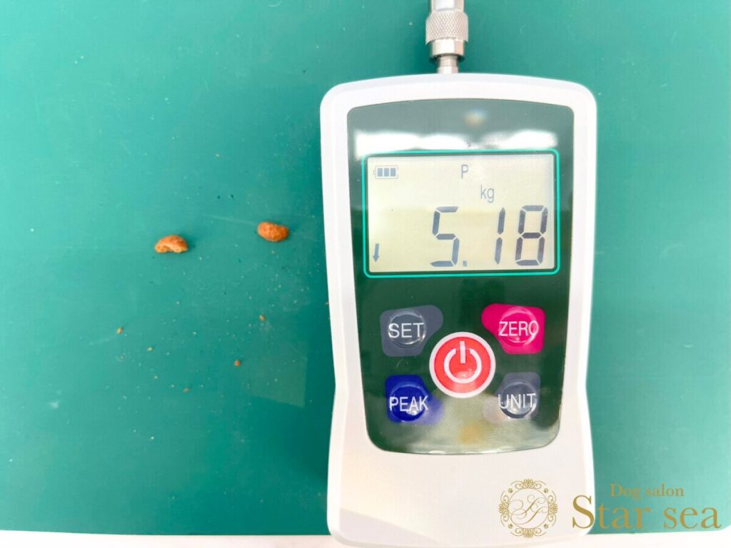 硬度測定器で粒の硬さを計測したところ、5.18㎏でした。