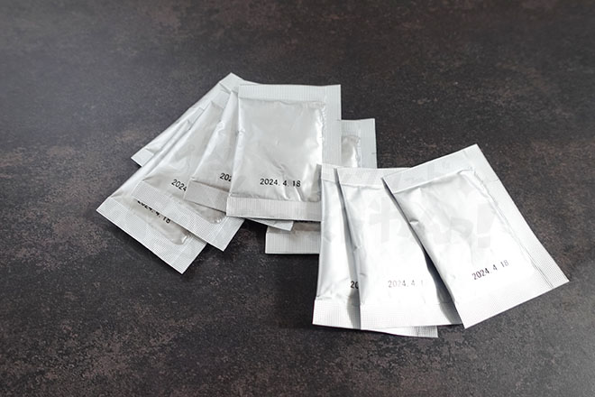 パッケージ上部の切口から手で開封すると中には、さらに小袋があります。1袋で30包入っていました。