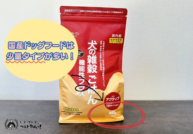国産ドッグフードは無添加にこだわり、保存料を控えているフードが多い傾向にあります。そのため賞味期限が短く、少量タイプのフードが多く販売されています。