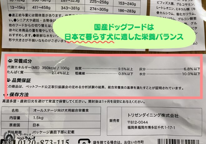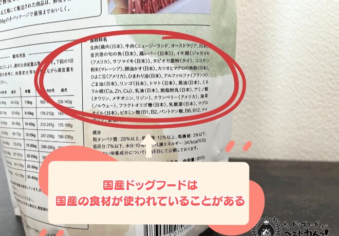 国産ドッグフードでも外国産食材が使われていることが多いため、食材の産地や品質にも注目する必要があります。