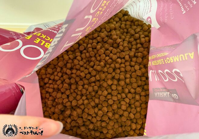 カークランドの小型犬用の粒は直径6∼8mmほどなので、小型犬でも食べやすいサイズになっています。