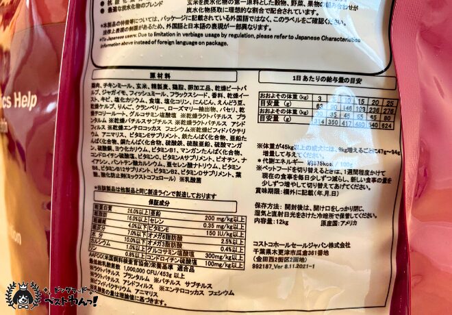 また便が緩くなってしまった犬もいるようです。カークランドには胃腸の調子を整えてくれるような成分が多数配合されているので、なかには便が緩くなってしまう子もいるかもしれません。