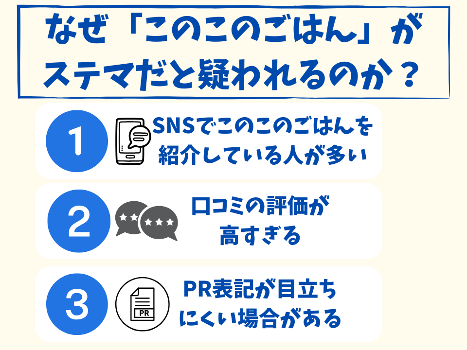 では、なぜ「このこのごはん」はステマだと疑われてしまうのでしょうか?