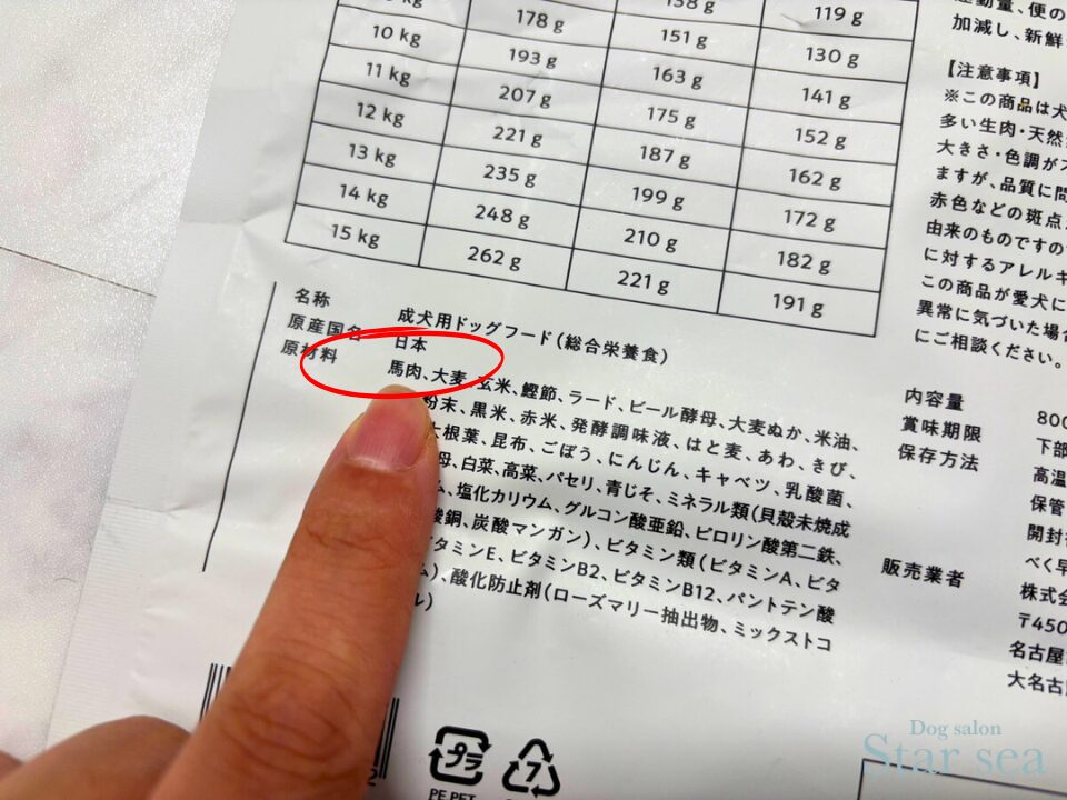 安心して与えるためには、鶏肉・サーモン・牛肉など具体的に食材名が記載されたフードを選ぶと良いでしょう。