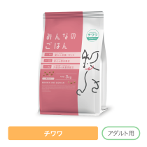 | パッケージ | みんなのごはん チワワ パピー用 | みんなのごはん チワワ アダルト用 | みんなのごはん チワワ シニア用 |