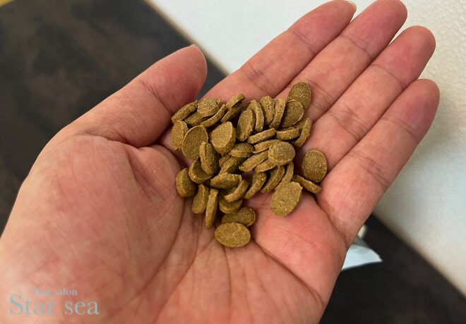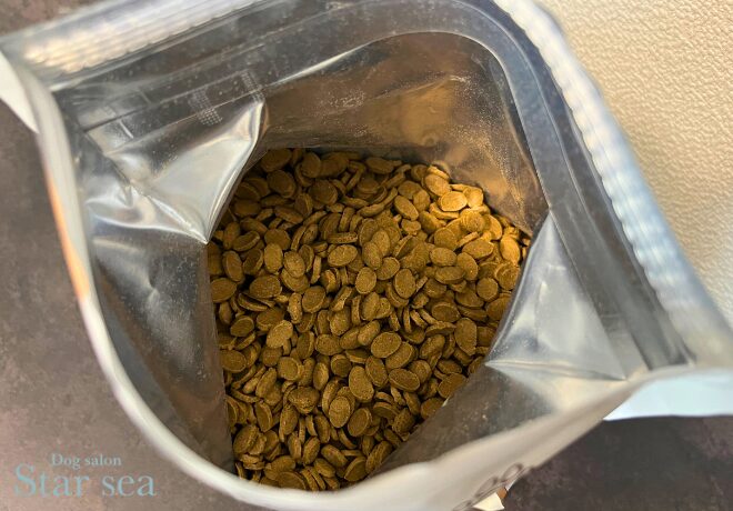 薄い粒ですが、しっかり噛み応えもありながら食べやすいのでシニア犬にぴったりだと思います。