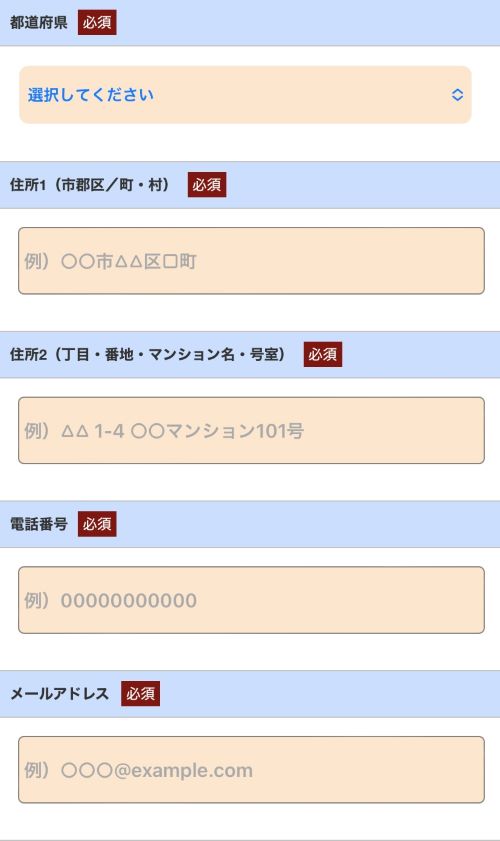 先ほど入力した住所以外にお届けする場合は、入力する必要があります。