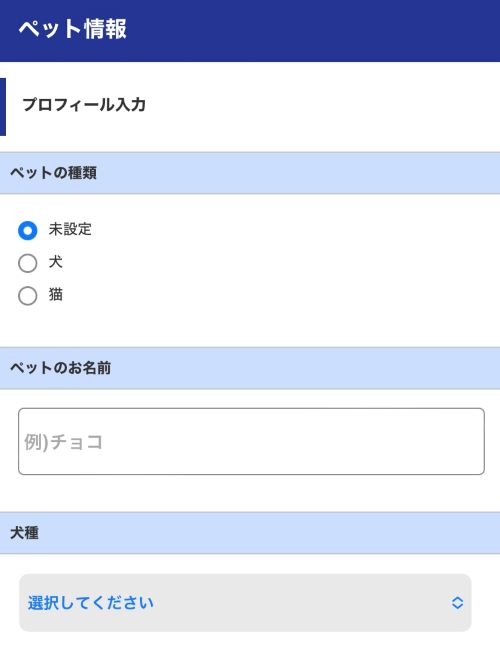 - 愛犬情報の入力