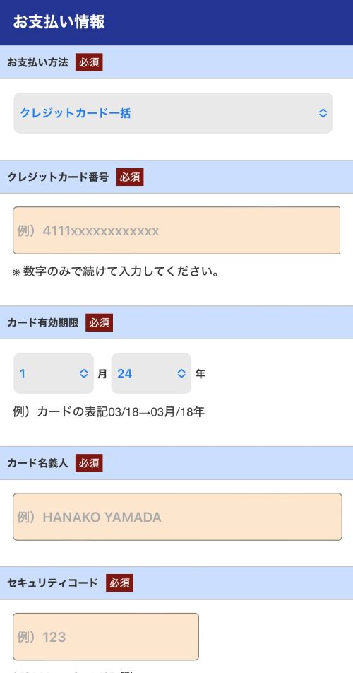 お支払い情報の入力