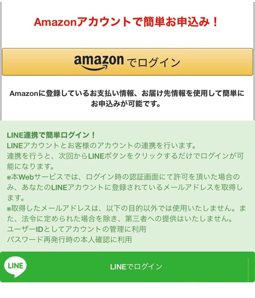 お客様情報の入力はAmazonアカウントにログインまたはLINEの連携で簡単に登録が行えます。便利なほうを選択してみるといいでしょう。