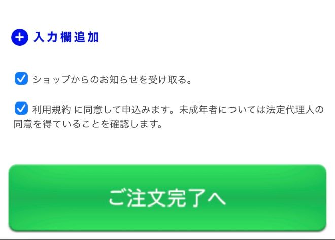 情報の入力が完了後「ご注文完了へ」ボタンをクリックしましょう。