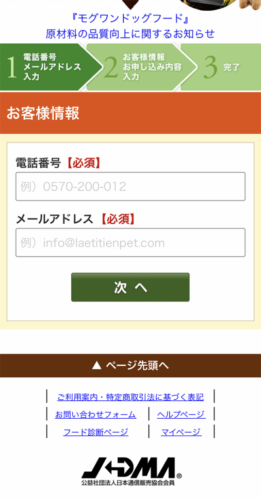 ➀初回は半額でモグワンを1袋注文します。