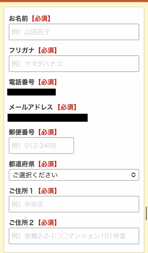 すると、お客様情報を入力する画面に切り替わります。
