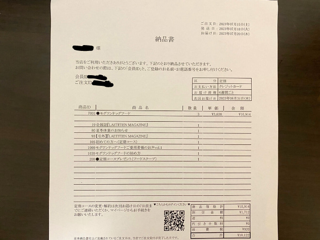 実際に友達が間違えて3個購入してしまった時の納品書を見せてもらいました。
