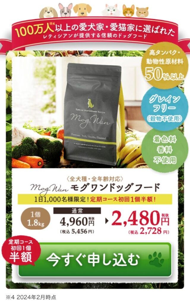 モグワンを半額キャンペーンで購入できるのは1日1000名限定です。