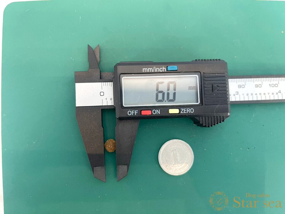 ネイチャーズプロテクションドッグフードを実際に測ってみたところ、直径は約6.0mm、厚みは約2.4mmと、とても小粒で薄型であることがわかりました。