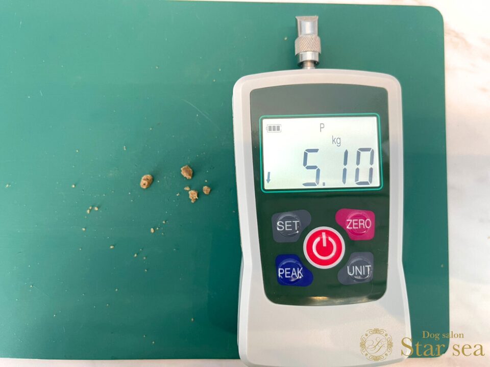さらに、硬度測定器で粒の硬さを測定してみたところ、5.10㎏と平均的な硬さであるわかりました。