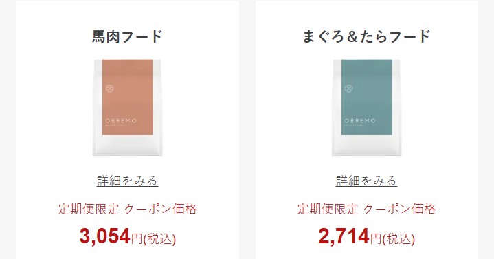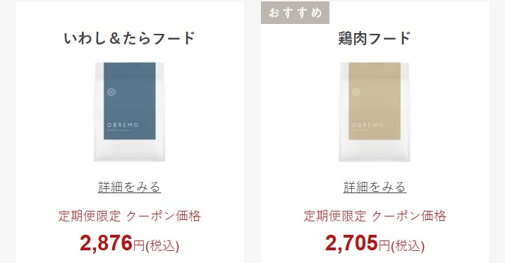 オブレモは、選ぶフードの種類によって価格が異なります。